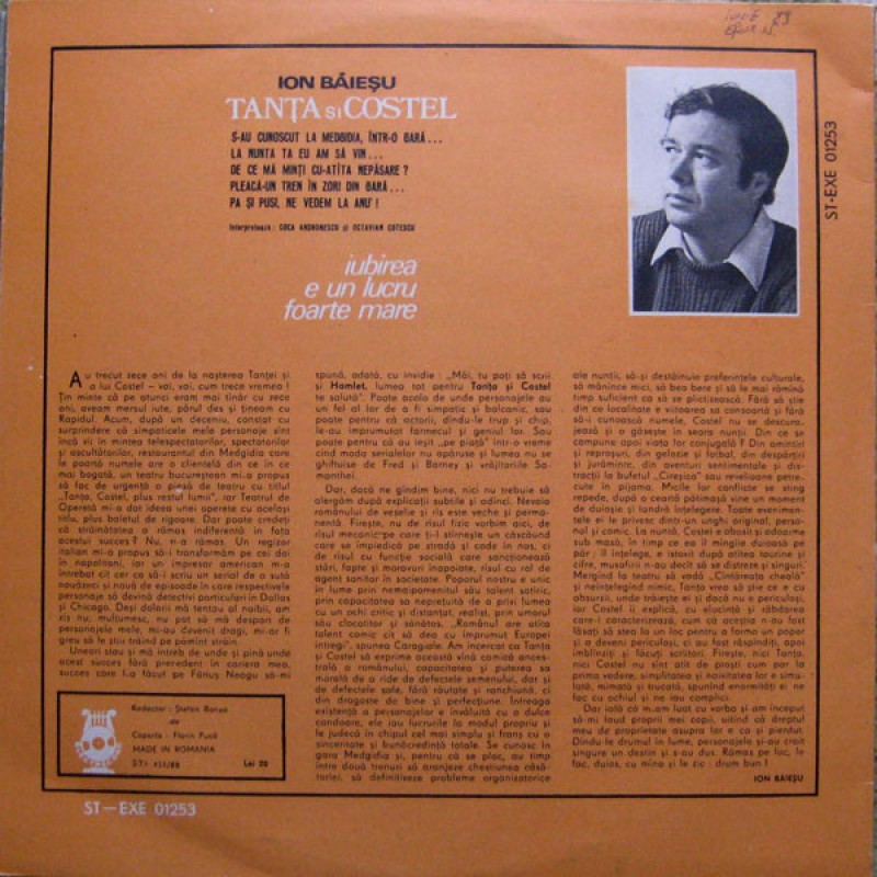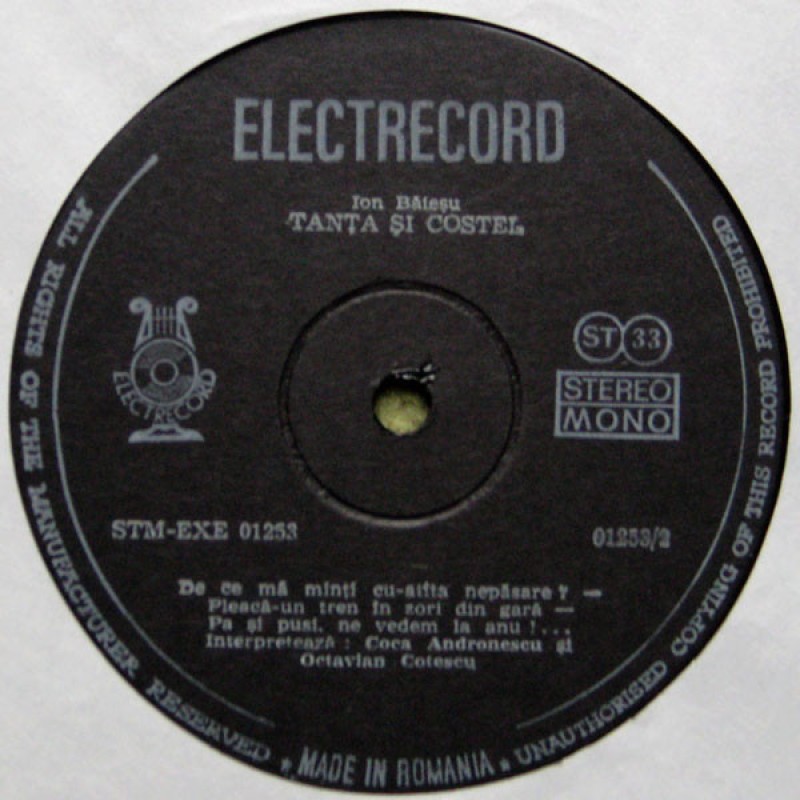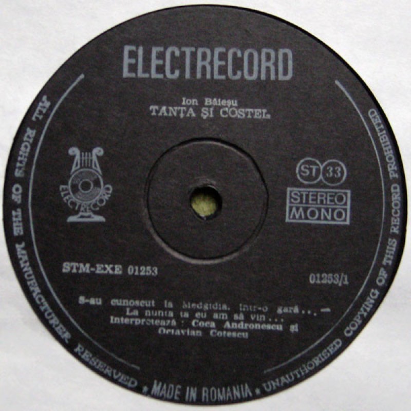 Notes: Made In Romania. Cat# STM-EXE 01253 on labels, ST-EXE 01253 on sleeve. Reissue from the early 90s (most likely 1990), with white print on black labels
