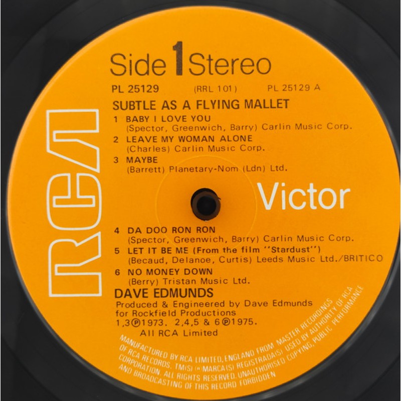 Notes: Includes single sided insert with credits. Originally released in 1975. [a=Nick Lowe] and [a=Bob Andrews] courtesy of UA Records. "Let It Be Me" & "Shot Of Rhythm And Blues" featured in the [a=David Essex] movie, Stardust. "No Money Down" & "Let It Rock" recorded live at Top Rank, Cardiff with Brinsley Schwarz (courtesy of UA Records). Publishers: A1, A2, A4: Carlin Music Corp. A3: Planetary-Nom (Ldn) Ltd. A5: Leeds Music Ltd./BRITICO A6: Tristan Music Ltd. B1: Marquis Music Co. Ltd. B2: Melanie Music Ltd. B3: Chappell-Morris Ltd. B4: Rock Music Co. Ltd. B5: Southern Music Pub. Co. Ltd. B6: Jewel Music Pub. Co. Ltd. Runouts are etched.