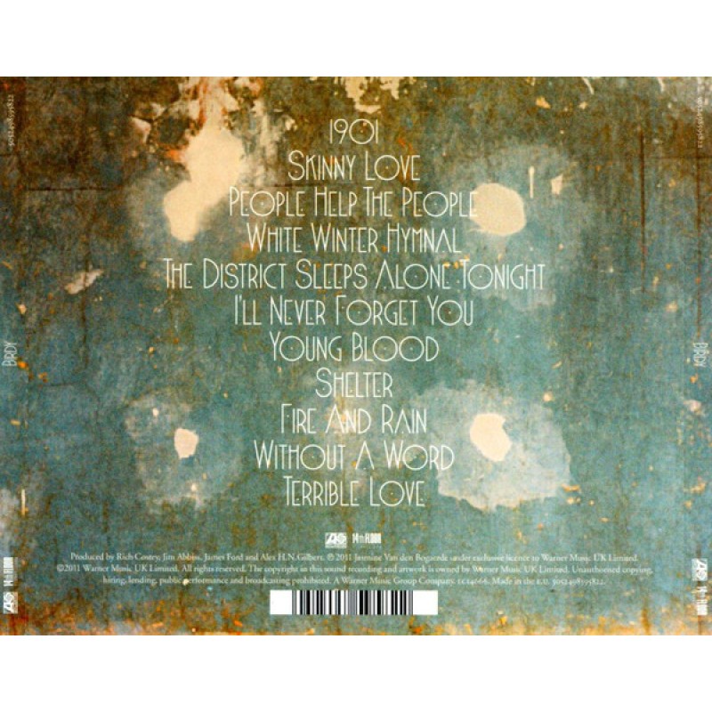 Notes: Some copies from Germany were released with a hype sticker highlighting the fact that the album includes "People Help The People", the official song of the 2011 Red Nose Day campaign. Some copies bear a transparent hype sticker stating "Includes the singles 'Skinny Love', 'Shelter' & 'People Help The People'". On disc, back cover and in booklet: ℗ 2011 Jasmine Van den Bogaerde under exclusive licence to Warner Music UK Limited. © 2011 Warner Music UK Limited. The copyright in this sound recording and artwork is owned by Warner Music UK Limited. A Warner Music Group Company. Made in the E.U. In booklet: Track 1: Published by Kobalt Music Publishing Limited. Recorded and mixed at Eldorado Studios, Burbank, CA. Track 2: Published by Chrysalis Music Ltd. Recorded at Dean Street Studios, Soho, London. Track 3: Published by Sony/ATV Music Publishing UK Limited. Mixed at Metropolis Studios, Chiswick, London. Recorded at RAK Studios, St Johns Wood, London. Track 4: Published by Chrysalis-Music-Ltd. Mixed at Eldorado Studios, Burbank, CA. Recorded at RAK Studios, St Johns Wood, London. Track 5: Published by Kobalt Music Publishing Limited. Mixed at Eldorado Studios, Burbank, CA. Recorded at RAK Studios, St Johns Wood, London. Track 6: Published by KTTF Music. Mixed at Eldorado Studios, Burbank, CA. Recorded at Abbey Road Studios, St Johns Wood, London. Track 7: Published by Sony/ATV Music Publishing UK Limited. Recorded and mixed at Eldorado Studios, Burbank, CA. Track 8: Published by Universal Music Publishing Limited. Mixed at Eldorado Studios, Burbank, CA. Recorded at RAK Studios, St Johns Wood, London and The Mill House Studio, Lymington. Track 9: Published by EMI Music Publishing Ltd. Mixed at Metropolis Studios, Chiswick, London. Recorded at RAK Studios, St Johns Wood, London. Track 10: Published by Good Soldier Songs administered by Warner Chappell Music. Recorded at Eldorado Studios, Burbank, CA and River Studios, Southampton, Hampshire. Track 11: Published by Bug Music Ltd. Recorded and mixed at Eldorado Studios, Burbank, CA and Angel Studios, London. Mastered at Sterling Sound, NYC. Thanks: To Christian and Max for their wisdom and faith. To Alex, for his support, patience, foresight and creative vision and for bringing it all together against all odds and to Rich Costey, for his creative energy and inventiveness, and to Dan, Chris, James, Kirk, Jamie and Matt at Eldorado Studios in L.A. Also to Jim Abbiss and Ian, James Ford and P-Dub for their wonderful creativity and encouragement. To all the musicians who contributed at RAK Studios and Abbey Road Studios. To Paul, Jess and Michael and Sara for making sense of it all and for looking after me so well, the Atlantic / 14th Floor team and Richard Perry for so brilliantly bringing this work into the public eye; and to Gareth and Ollie at River Studios, Southampton for 'Without A Word'. Special thanks: To Juliet Read who found me on YouTube and whispered to the great and good and to Fearne Cotton for listening to my music and sharing it. To my Mumma and Dadda for all of the time you put aside for me and for all of your support, love and encouragement and to Poppa for being such a wise tortoise. Lastly thank you to all the friends and fans that made this all possible. Packaging: jewel case with clear tray and 8-page booklet.