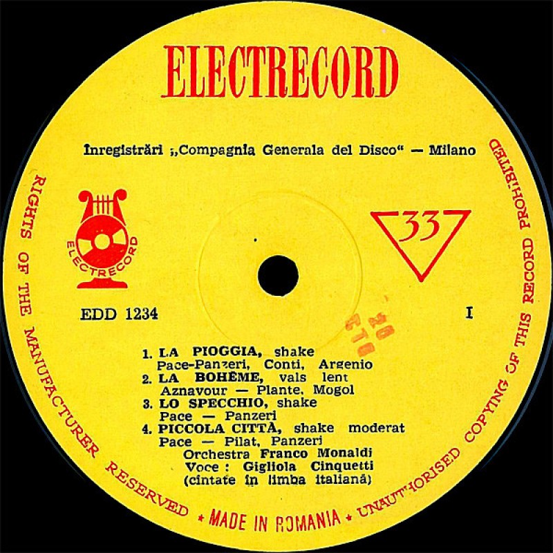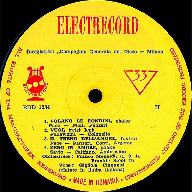 Notes: Made in Romania Catalog number "EDD 1234" on labels, "EDD-1234" on rear sleeve Yellow labels with red/black print.