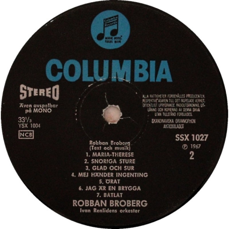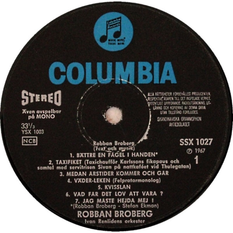 Notes: Noted in the tracklist after the title: A2: (Taxichaufför Karlssons fikapaus och samtal med servitrisen Sivan på nattkaféet vid Thulegatan) A4: (Felpratarmonolog)