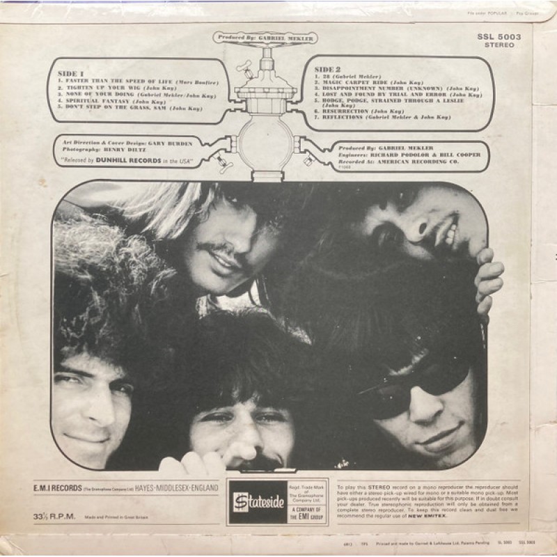 Notes: Original 1968 release with slightly different labels than the corrected [r=4709702]. Side A: The song title in DON'T STEP ON THE GRASS, SAM is not broken before SAM. Side B: Track 4 is misnumbered 5, so two songs are numbered 5. Flipback sleeve, laminated on front. First cat. no. appears on labels, the second on sleeve. ℗ 1968 Rimtext on labels: • THE GRAMOPHONE CO LTD • MADE IN GT. BRITAIN • SOLD IN U.K. SUBJECT TO RESALE PRICE CONDITIONS. SEE PRICE LISTS A Dunhill recording Publishing: • Leeds Mus. Ltd. - A1. • Carlin Mus. Corp. - A2 to B7. Runouts are stamped.