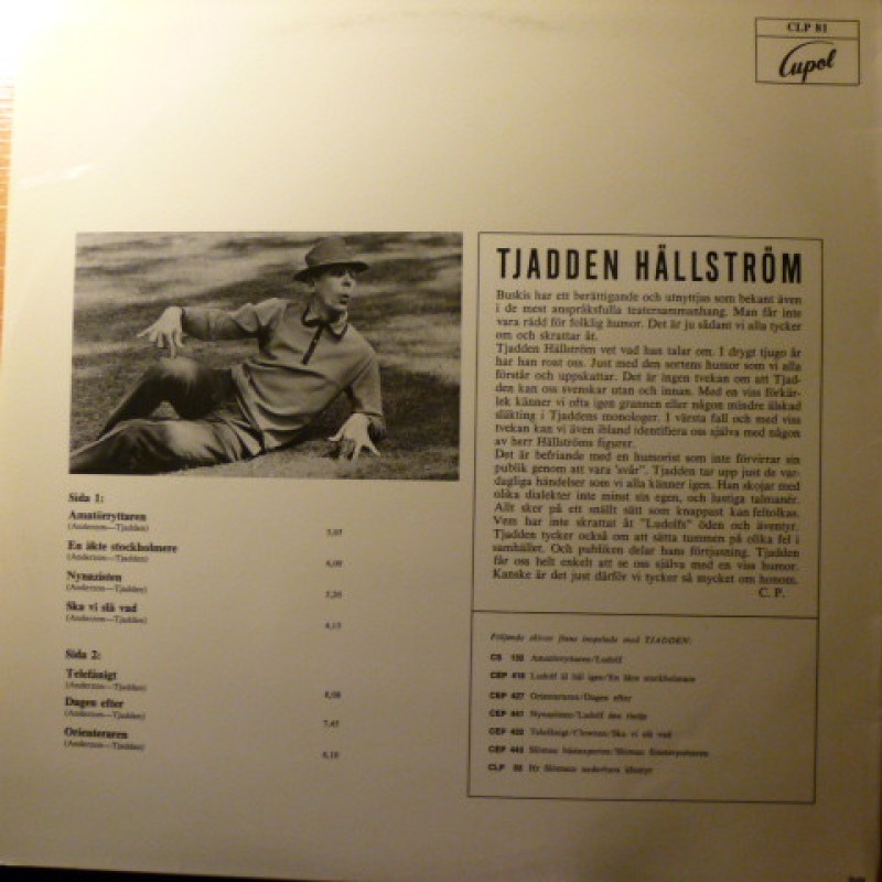 "Tjadden" Hällström (b. November 7, 1923, Norrköping; d. December 5, 2000, Älvsjö) was a Swedish comic actor.
