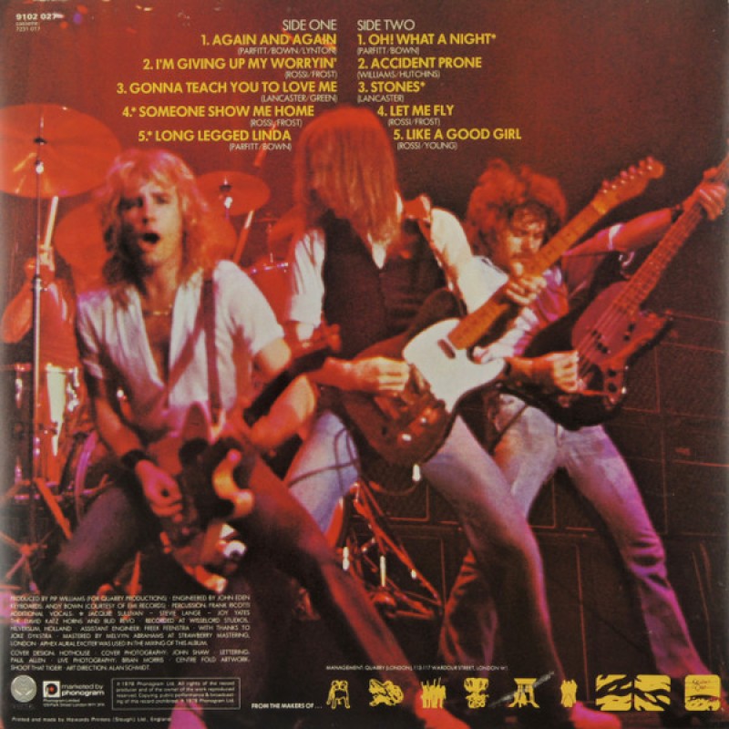 Notes: Vertigo spaceship labels Matte, die-cut gatefold sleeve. The images are orientated sideways relative to the gatefold spine. Printed lyric inner of side opening card. Labels: ℗ 1978 Phonogram Ltd. Made in England Publishing info: A1, B1 - Shawbury M. (Eaton M. Ltd.) / EMI M. Ltd. A2, A4, B4 - Shawbury M. (Eaton M. Ltd.) / Dump M. (Andrew Heath M. Ltd.) A3 - Shawbury M. (Eaton M. Ltd) / Essex M. Ltd. A5 - Shawbury M. (Eaton M. Ltd.) / G.H. M. Ltd B2 - Handle M. Ltd. B3, B5 - Shawbury M. (Eaton M. Ltd.) Inner sleeve: Recording studio credited as "Wisselord" instead of "Wisseloord". Publishing info: A1, B1 - Shawbury Music / EMI Music A2 - Dump Music A3 - Shawbury Music / Essex Music A4, B4 - Shawbury Music / Dump Music A5 - Shawbury Music / G. H. Music B2 - Handle Music B3, B5 - Shawbury Music
