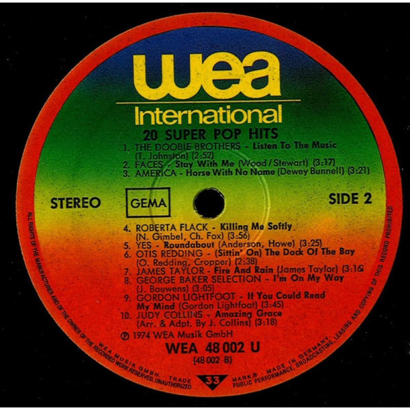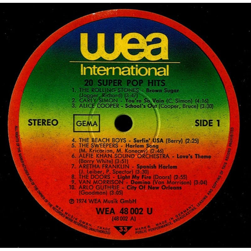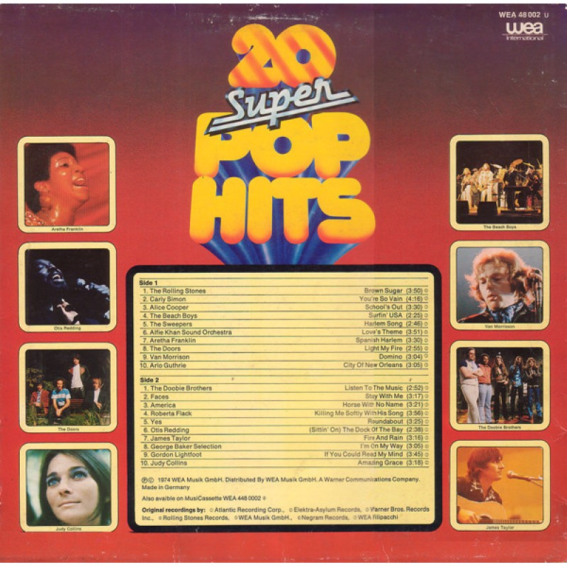 Notes: Original Stars Original Hits ℗© 1974 WEA Musik GmbH. Distributed by WEA Musik GmbH. A Warner Communications Company. Made in Germany. Also available on MusiCassette WEA 448 0002 ① Runouts side A and B: "Manufactured in Germany" is stamped.