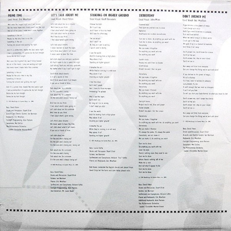 ● [a=Eric Woolfson] – composition, lyrics, piano, keyboards, vocals, executive production