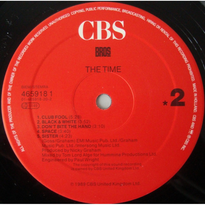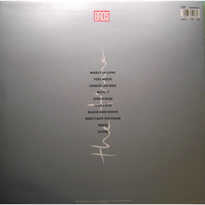 Notes: This album is dedicated to our late, dear and treasured sister...Carolyn. Recorded at Sarm West Studios London, Hot Nights London, Studio Miraval France, ICP Studios Belgium and Chateau Du Pape Germany. Mixed at Nomis Studios, Mayfair Studios and Sarm East Studios for Hummina Productions Ltd. Published by EMI Music Publishers Ltd/Graham Music Publishing Ltd/Intersong Music Ltd. Distribution: CBS Records/CBS Disques S.A. ℗ © 1989 CBS United Kingdom Ltd. The songwriting is credited to Goss/Graham which includes both brothers Goss. Tracklisting on innersleeve is numbered 1-10. Runouts : The string "01 465918 20 1#1" is stamped, the rest is etched.