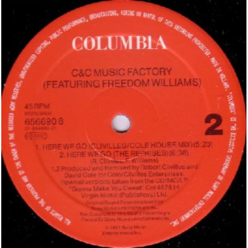 The most popular incarnation of the [a=Clivillés & Cole] collaboration was C+C Music Factory. Their 1990 album "Gonna Make You Sweat" featured many successful singles such as "Here We Go", "Things That Make You Go Hmmmm..." and "Gonna Make You Sweat (Everybody Dance Now)", which featured vocals by [a=Martha Wash] and [a=Freedom Williams].