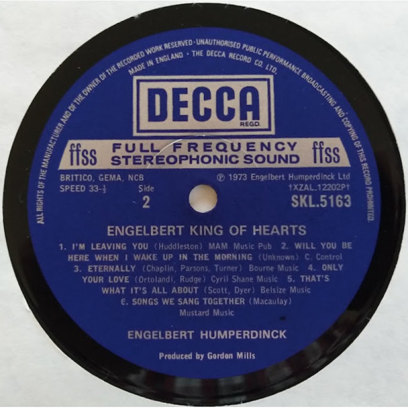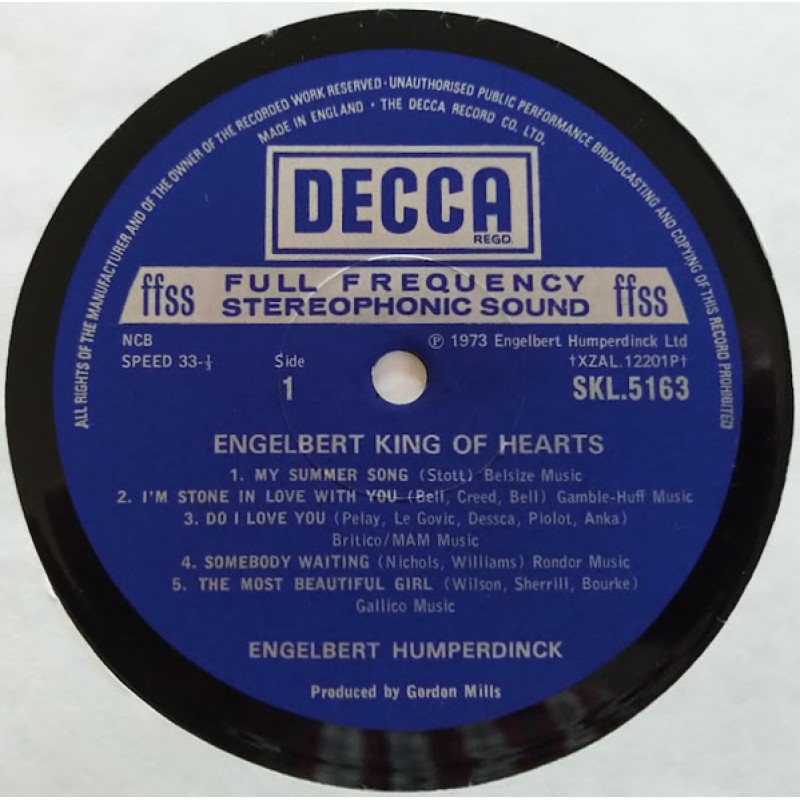 Notes: Sleeve printed in England by [l264944] Laminated with 'Clarifoil' made by [l348572] ℗ 1973, Engelbert Humperdink Limited Made in England