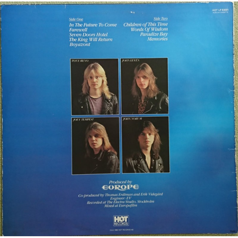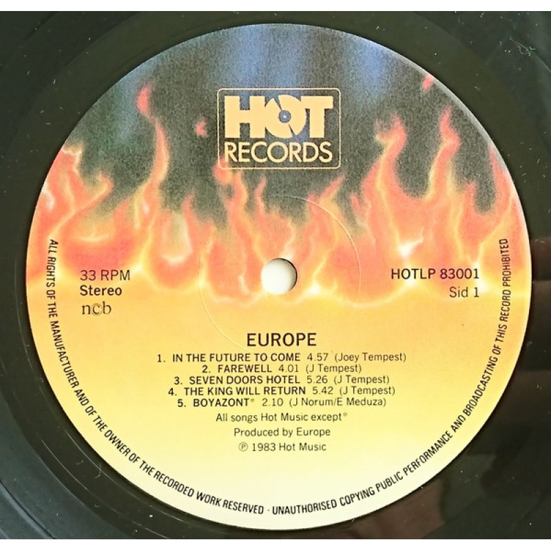 Notes: Label variant noticed by the "Hot Records" logo on labels being "boxed". Variant with [url=27627570]logo not being boxed[/url]. Released with a printed inner sleeve. Inner sleeve: All songs written and composed by Joey Tempest except "Boyazont". Label, side A: 5. Boyazont* All songs Hot Music, except *