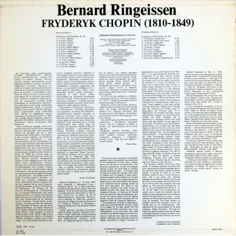 Notes: Recorded 8-10 December 1980. Concert Hall of Chopin Music Academy in Warsaw.
