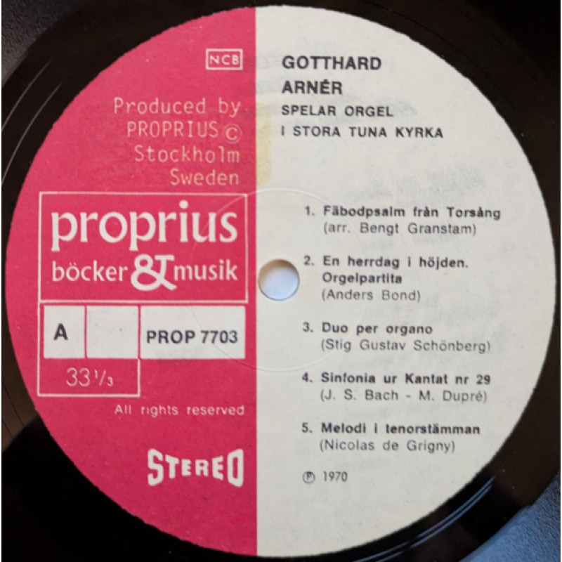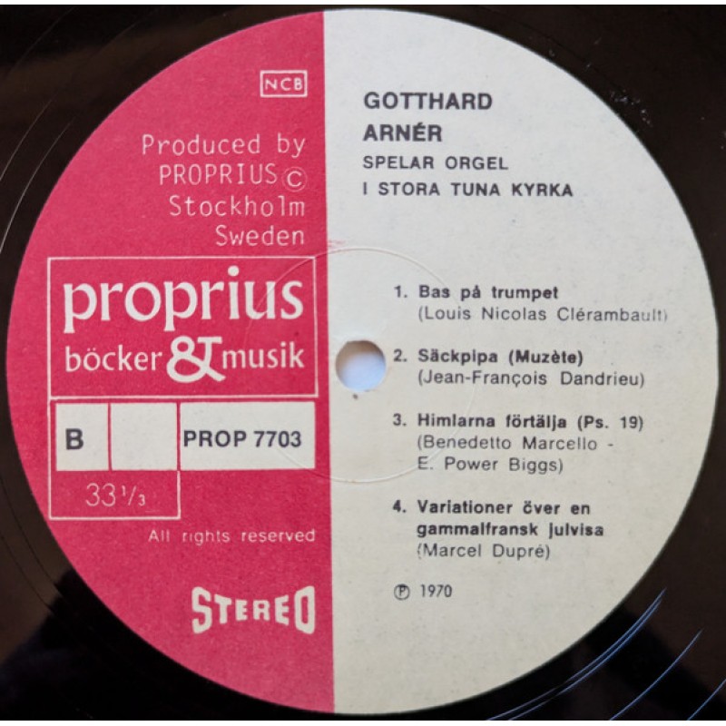 Notes: Unlike the other editions, this one does not mention EMI in the upper left corner of the front cover, only Proprius. Stereo compatible mono. In the runouts, "PROP-7703-A/B" is handwritten and etched. On side A, "4E061 34128 A" is struck out. ℗ 1970