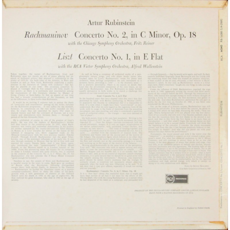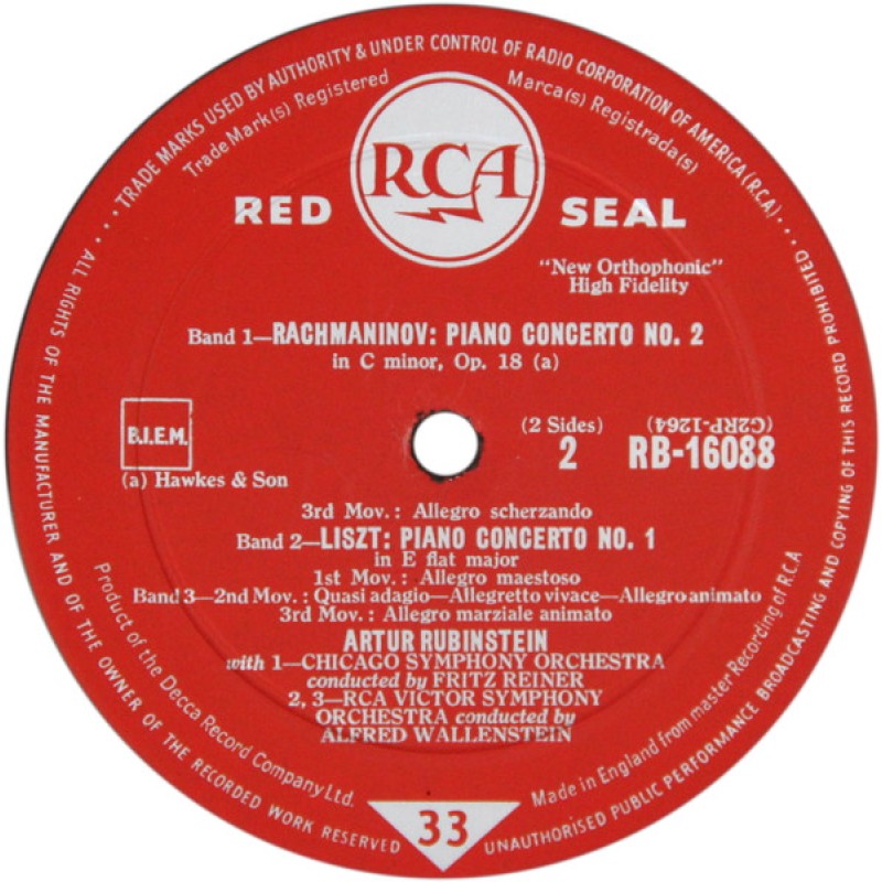 Artist: Sergei Vasilyevich Rachmaninoff / Franz Liszt - Arthur Rubinstein - Fritz Reiner With The Chicago Symphony Orchestra / Alfred Wallenstein, RCA Victor Symphony Orchestra