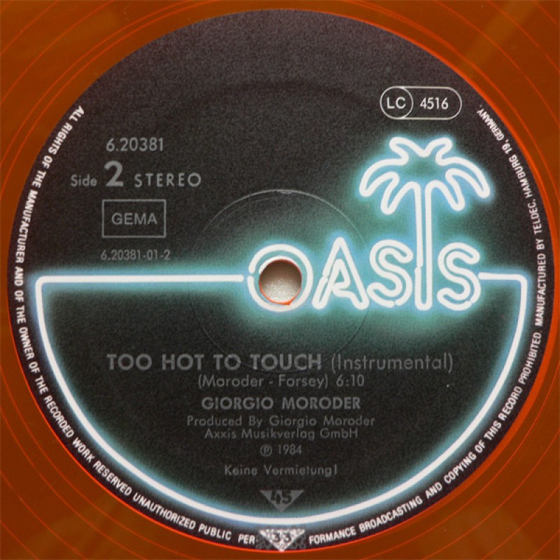 Notes: Released on transparent orange vinyl. There is also a version released on [url=https://www.discogs.com/Giorgio-Moroder-Paul-Engemann-American-Dream/release/9113322]transparent green vinyl[/url]. ℗ & © 1984 Axxis Musikverlag GmbH Manufactured by Teldec, Hamburg 19, Germany Made in Germany • TELDEC Schallplatten GmbH • 2000 Hamburg 20 140 BPM (track A) Track B taken from the album "[m=25970]" 6.25519