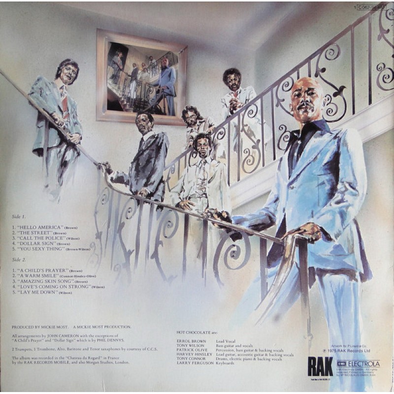 Hot Chocolate formed in Brixton, London, England. Members of the group around Errol Brown included Tony Connor, Larry Ferguson, Harvey Hinsley, Derek Lewis, Pat Olive and Tony Wilson.
