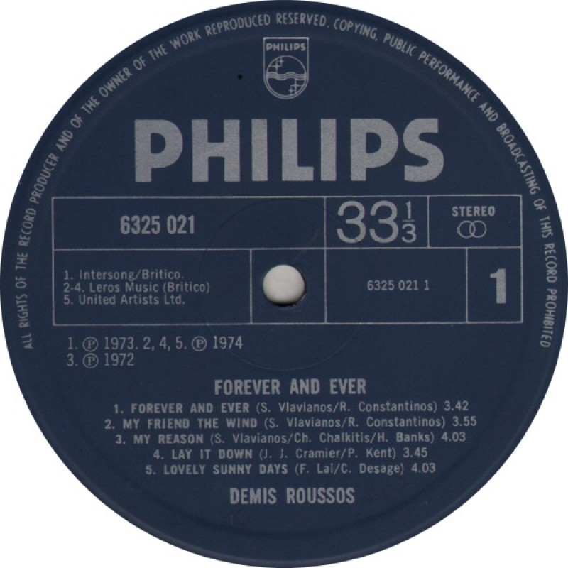 Notes: Title is printed as "Forever And Forever" on the cover spine. A1. Intersong/Britico ℗ 1973 A2. Leros Music (Britico) ℗ 1974 A3. Leros Music (Britico) ℗ 1972 A4. Leros Music (Britico) ℗ 1974 B5. United Artists Ltd. ℗ 1974 B1. Chappell/Britico ℗ 1974 B2. Intersong/Britico ℗ 1973 B3. Leros Music (Britico) ℗ 1974 B4. Britico/Ambleside M./KPM ℗ 1972 B5. Intersong Music ℗ 1974 Manufactured and printed in England The runouts are stamped.