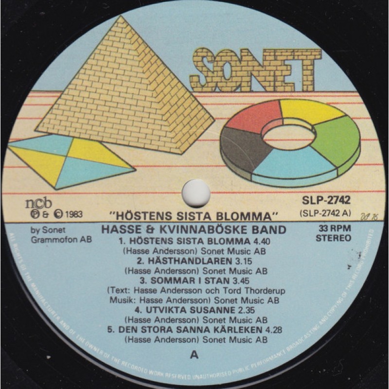 Notes: Recorded at Peter Berges Studio, Malmö, in May, September and October 1983. Mixed at Parkstudion, October 1983. Lyrics on inner sleeve. Tracks with other © then Sonet Music AB. B1: Chappell Nord. AB. B3: Multitone AB. ℗ 1983 Sonet Grammofon AB © 1983 Sonet Grammofon AB