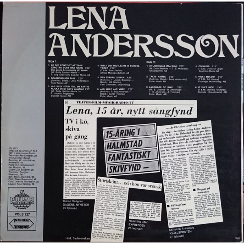 She broke through as a 15-year-old with "Is it strange that one longs away some time" and participated in both 1972 and 1977 in Melodifestivalen. Since 2001 she lives in the USA, where she is active as a singer of Christian texts.