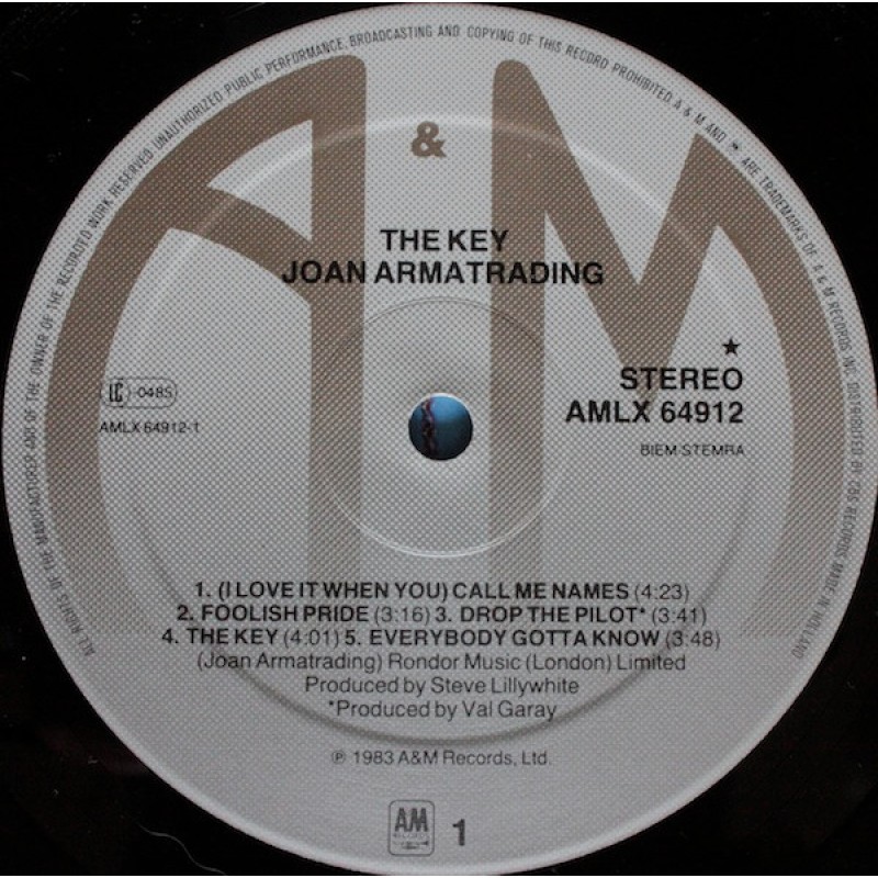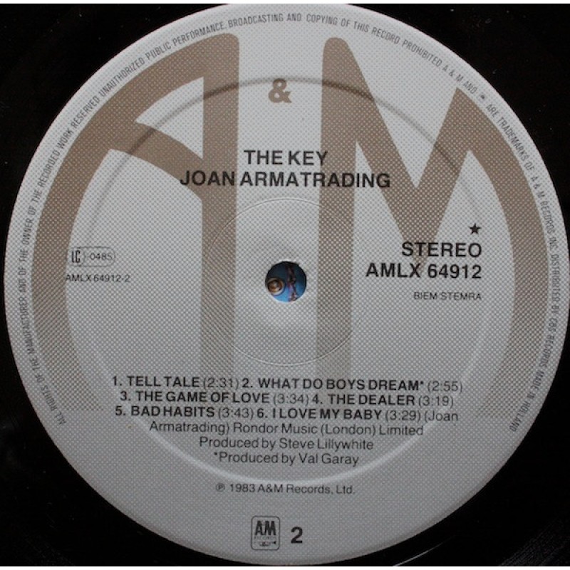 Notes: Issued with a printed inner sleeve with picture, credits and lyrics. The inner sleeve has a thumb cut on one side of the opening edge. The catalogue number AMLX 64912 is also printed on the slightly embossed and silver foiled key on the front jacket. All runout details are machine stamped. [Rear jacket:] 1983 A&M Records Ltd. 1983 A&M Records Ltd. [...] A&M and [A&M logo] are trademarks of A&M Records, Inc. [...] / Printed in Holland [Labels:] ★ STEREO Rondor Music (London) Limited ℗ 1983 A&M Records, Ltd. A & M and [A&M logo] are trademarks of A & M Records Inc. [...] Made in Holland