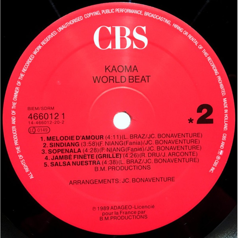 Kaoma was a group assembled by [a=Jean Karakos] and [a=Olivier Lorsac] to promote the track "Lambada". The Lambada became the biggest selling global single in 1989. The ultimate rights for the recording are held by Adageo BV and for the songwriting / composition held jointly by EMI and Adageo BV.