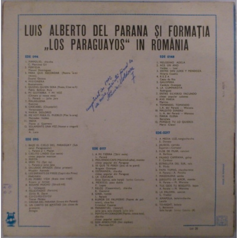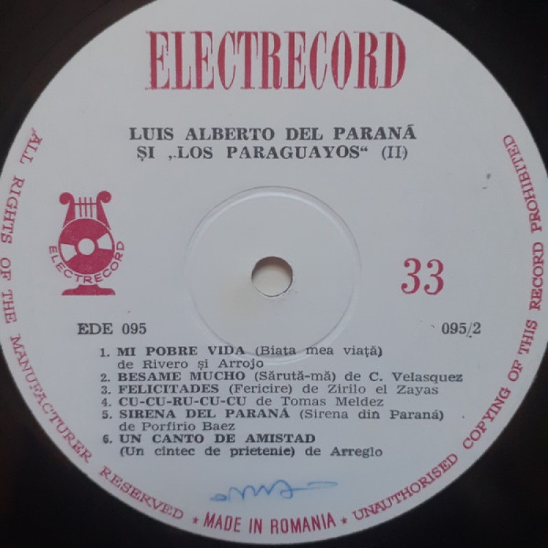 Notes: Made in Rumania Different back sleeve. Track B12 is incorrectly credited to "Arreglo" which translated just means "Arranged by"