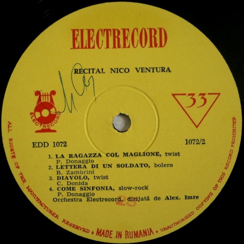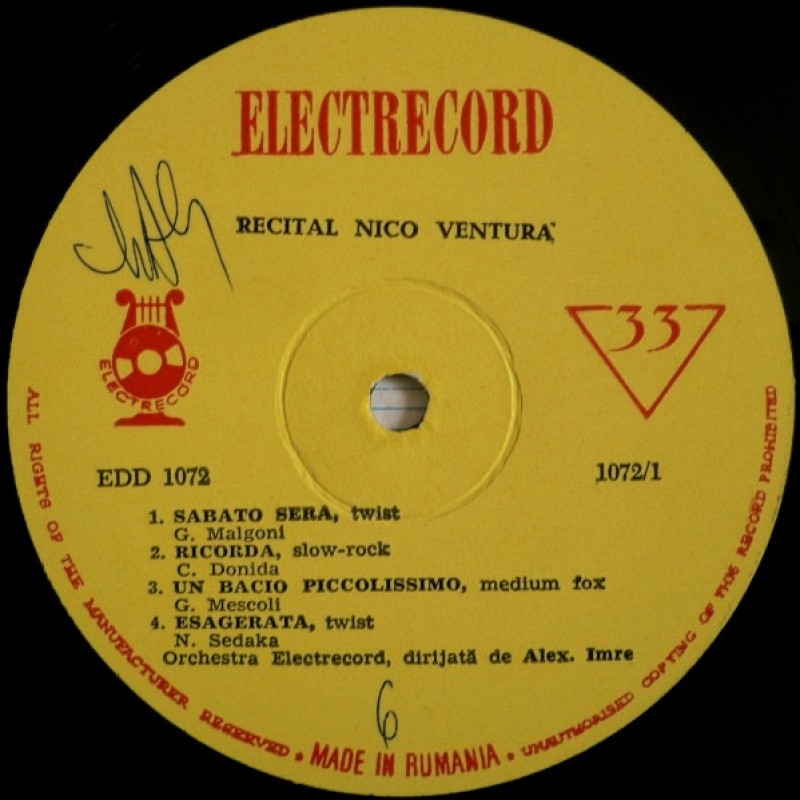 Notes: A1, A4, B1, B3 - twist A2, B4 - slow-rock A3 - medium fox B2 - bolero Yellow labels with red/black print. Made in Rumania