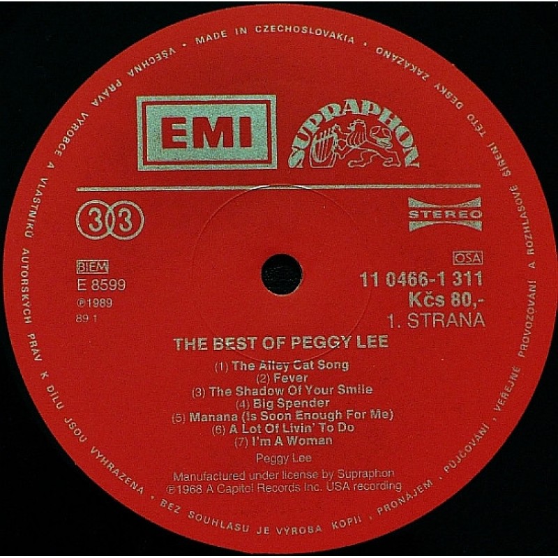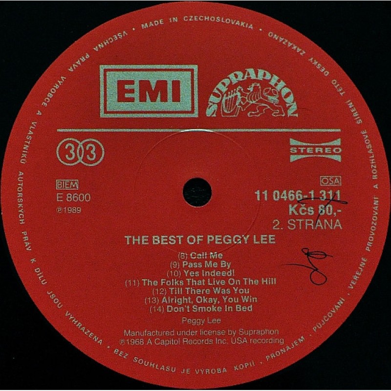 Notes: Peggy Lee Nahrávky a dokumentační údaje převzaty z materiálu firmy EMI Manufactured under License by Supraphon (P) 1968 A Capitol Records Inc. USA recording Design © 1988 Sleeve-note © 1988