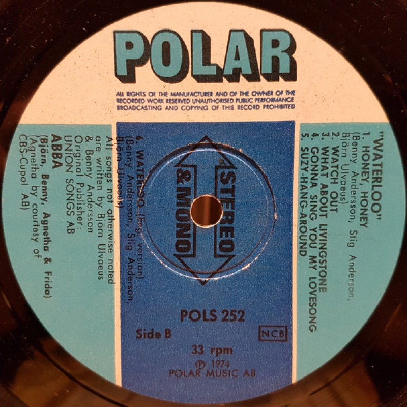 Notes: Recorded at Metronome Studio Oct 73–Jan 74. Agnetha by courtesy of [l81020] Artist listed as "ABBA (Björn, Benny, Agnetha & Frida)" Similar to [r=5588185] but this release has a "SIB Tryck" logo on back of sleeve. ℗ 1974 Polar Music AB