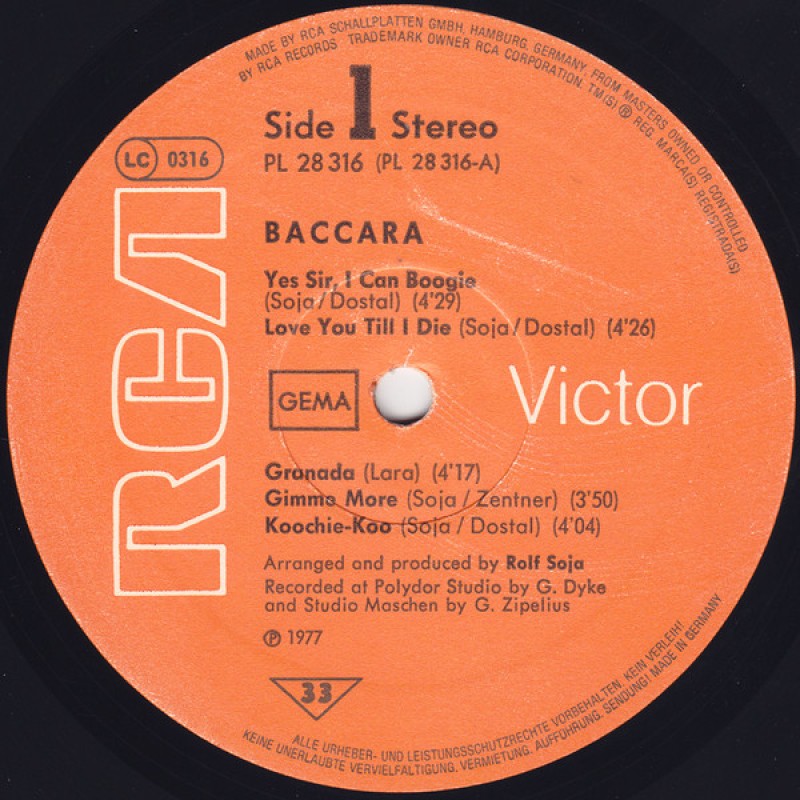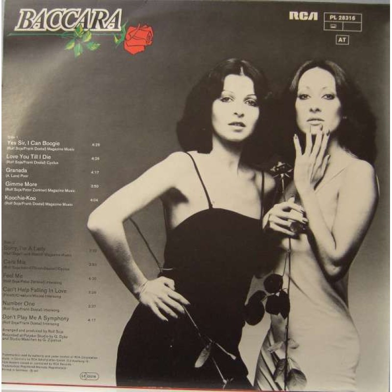 "New Baccara" then dropped the "New", becoming simply "Baccara" but, still staying separate from [a=Mayte Mateos]'s old one. Soon after, while [a=María Mendiola] & Marissa as "Baccara" continued to release tracks, [a=Mayte Mateos] formed another duo with [a734792], named "Baccara 2000". After releasing an album & several singles (including a re-recording remix of "Yes Sir, I Can Boogie" called "Yes Sir, I Can Boogie '99"), this "Baccara 2000" dropped the "2000" and also went simply by "Baccara".