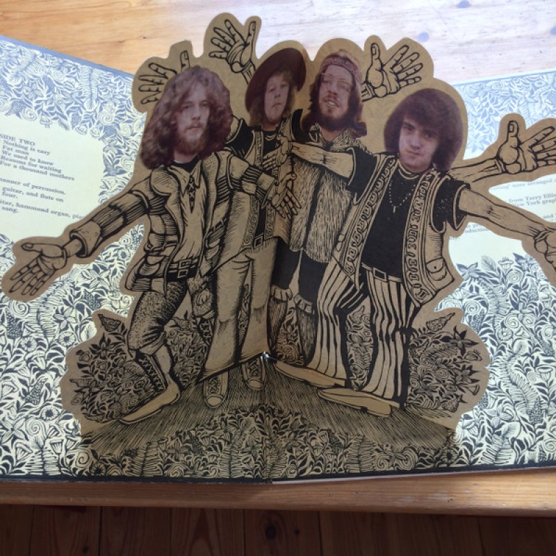 Notes: Pink-rimmed Island Labels (full picture labels edition with landscape). Matte gatefold sleeve with pop-up of artists. Runouts side A / B: entirely stamped. Note: due to the narrowness of the side B runout these stampers are hard to identify as they are almost entirely covered by the pink label rim. Island Records Ltd, Basing Street London W.11. Recorded in Morgan Studio. "The cover was based on ideas from Terry Ellis and John Williams and printed from woodcuts by New York graphic artist, Jimmy Grashow." Published by Chrysalis Music ℗ 1969