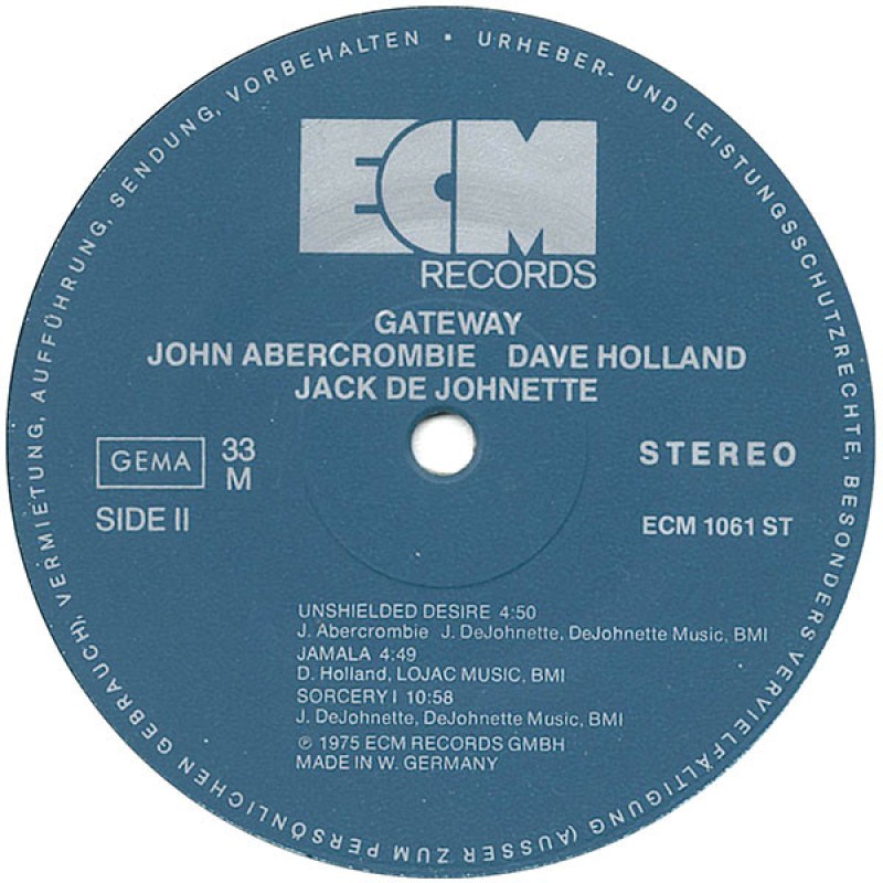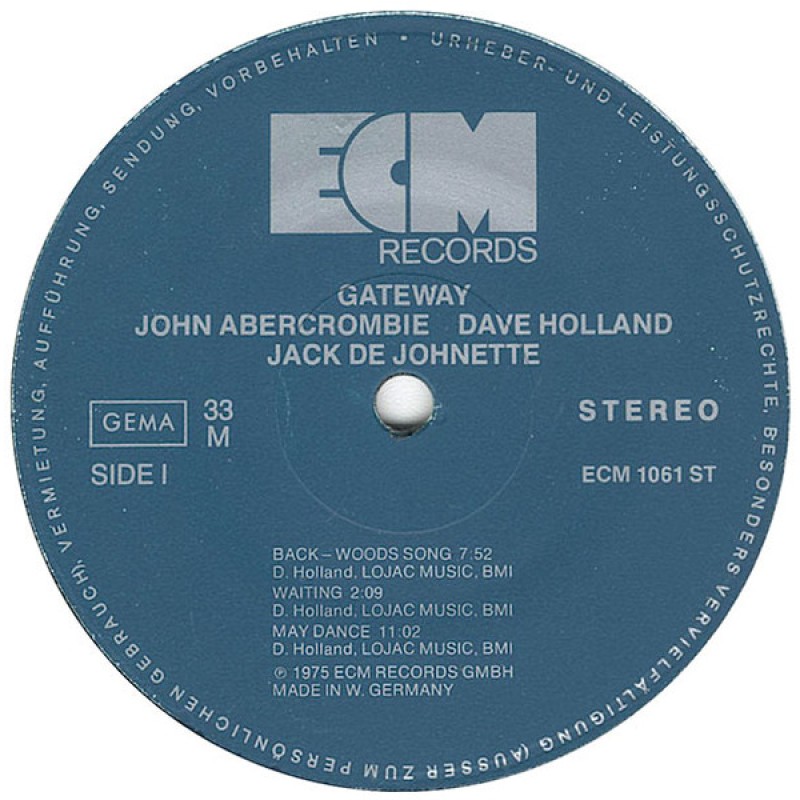 Notes: Blue label edition. Recorded March 1975 at Tonstudio Bauer, Ludwigsburg Jack DeJohnette appears courtesy of Prestige Records Tracks A1 to A3 & B2 published by LOJAC Music, BMI Tracks B1 & B3 published by DeJohnette Music, BMI ℗ 1975 ECM Records GmbH Made in W. Germany Printed in W.-Germany