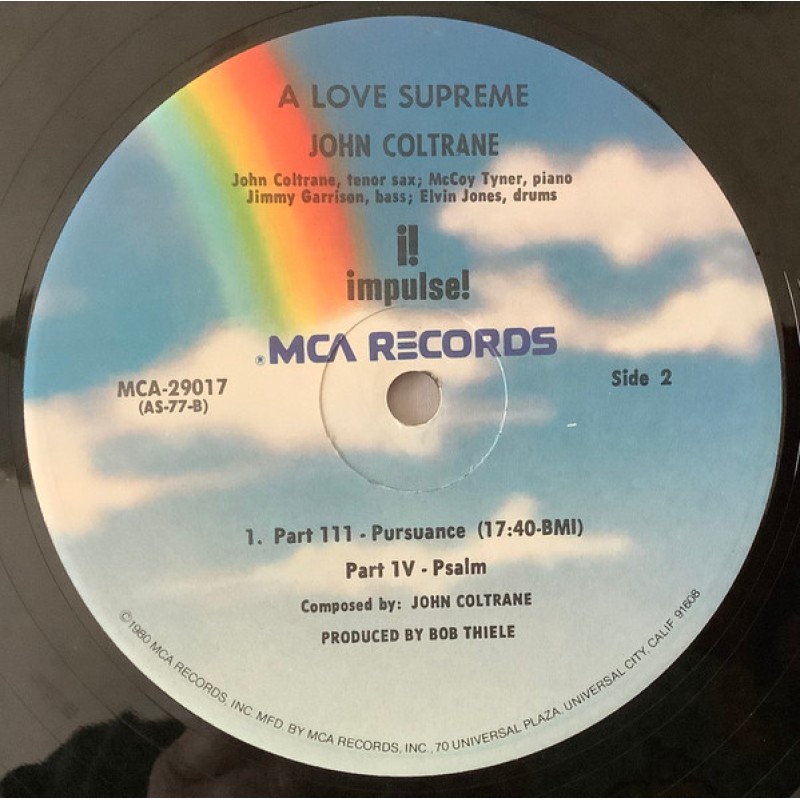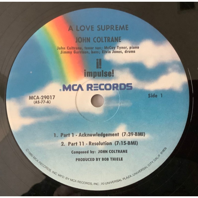 Notes: Has White Circle With Black Writing That Says "MCA impulse! MCA-29017" On Front And Back Cover. Rainbow Labels With impulse! In The Center. Has A Barcode. Does Not Have A Love Supreme Poem On The Back Cover. Has A Jazz Heritage Series Insert. On The Label Side 1: MCA-29017 (AS-77-A) On The Label Side 2: MCA-29017 (AS-77-B)