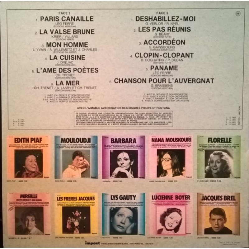 Notes: Gravure Universelle and Enregistrements Originaux on front cover. Price code RB and Bld Vincent Auriol address on back cover. Red labels. Released in 1977 or 1978 due to price code. "Made and Printed in France" "Avec l'aimable autorisation des disques Philips et Fontana"