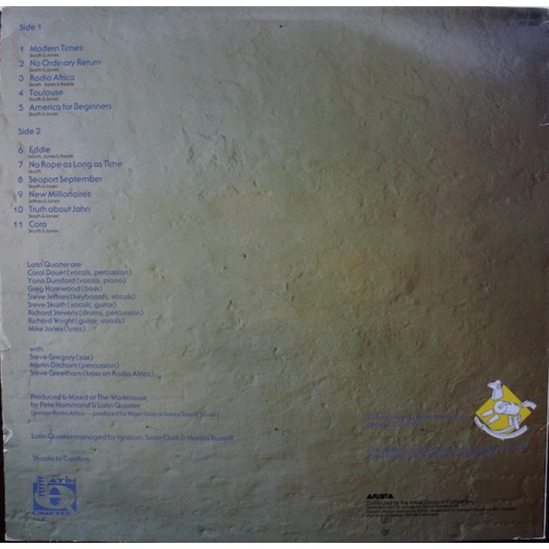 Notes: Laminated cover Came with printed inner sleeve [Label:] ℗ + © 1985 Arista Records Ltd.