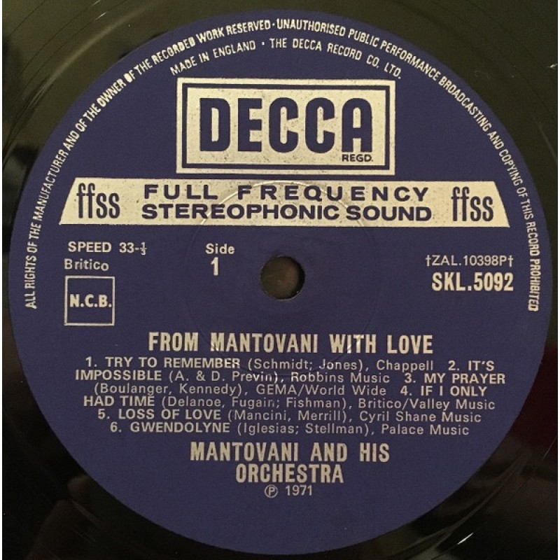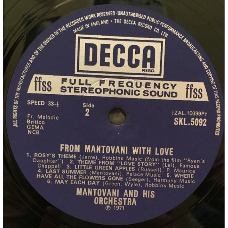 Mantovani And His Orchestra – From Mantovani With Love