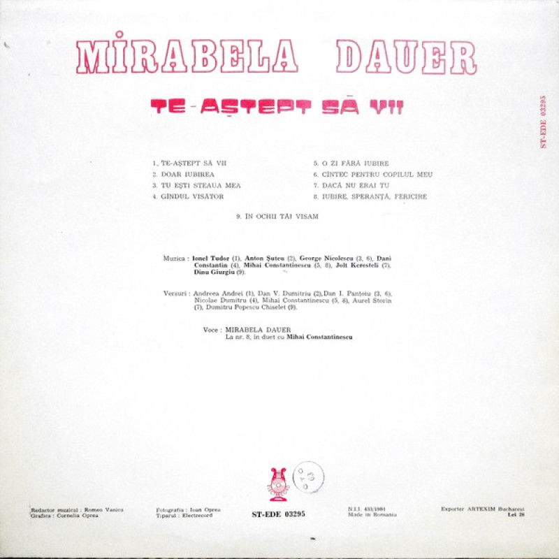 Early in her career, Mirabela Dauer took part with Aurora Andronache in Aurora vocal group.