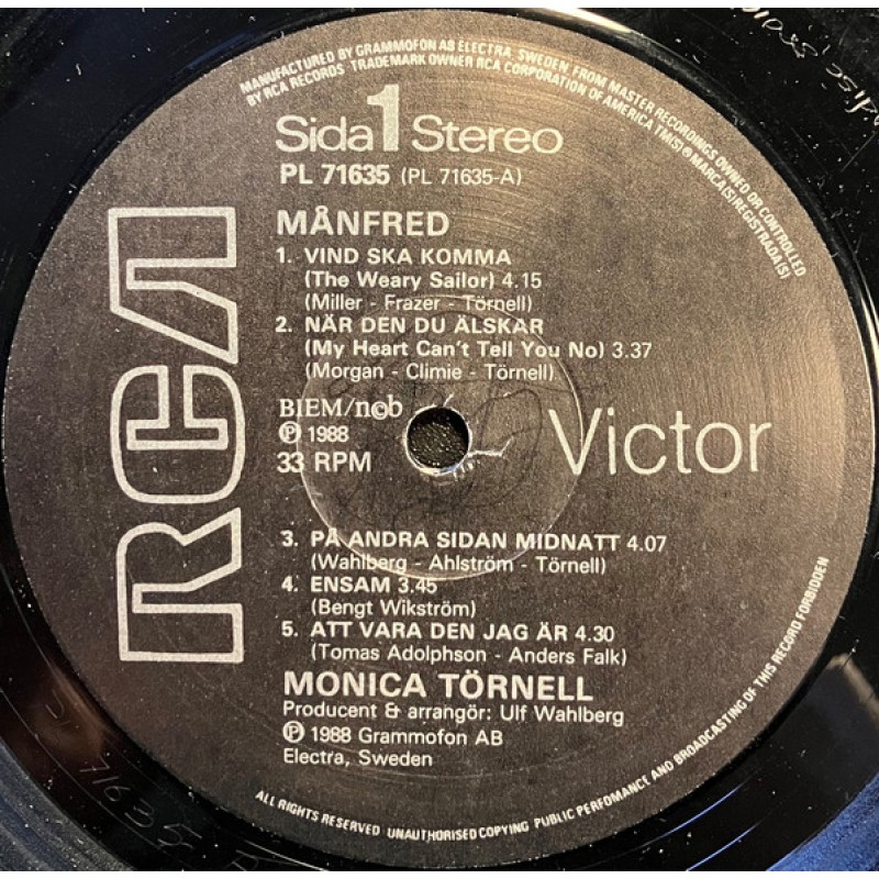 Notes: © & ℗ 1988 Grammofon AB Electra, Sweden