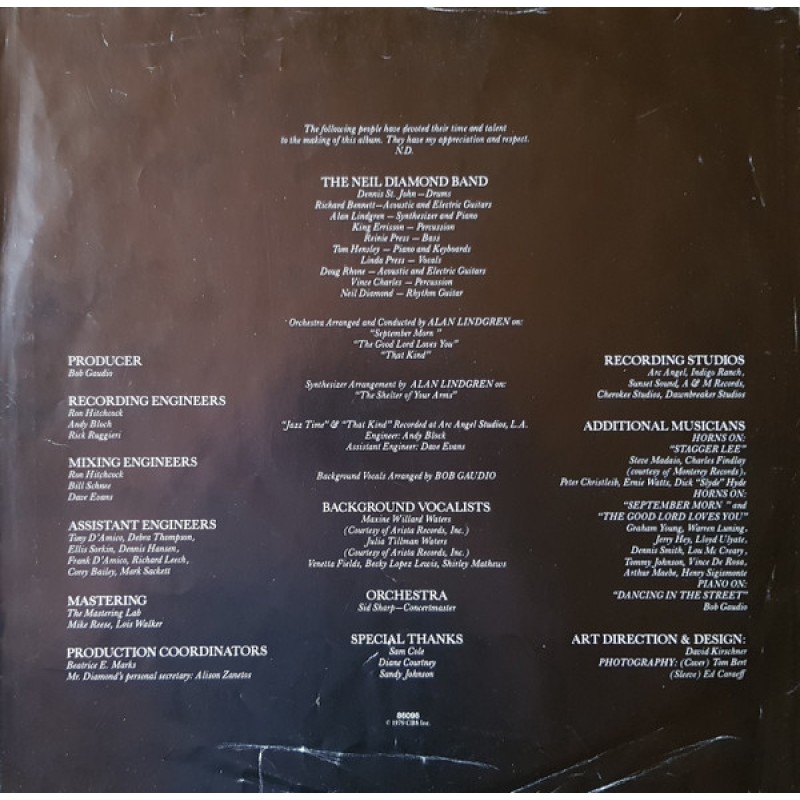 Notes: Issued with a printed inner sleeve. Stamped and etched runouts. B side lacquer cut at The Mastering Lab Printed on backcover: © 1979 CBS Inc. / ℗ 1979 CBS Inc. / CBS & [CBS logo] are reg. trademark of CBS Inc. / Printed in Holland Printed on innersleeve: The following people have devoted their time and talent to the making of this album. They have my appreciation and respect. N.D. Mastering: The Mastering Lab "Jazz Time" & "That Kind " recorded at Arc Angel Studios, L.A. Background vocalists: Maxine Willard Waters (courtesy of Arista Records, Inc.) Julia Tillman Water (courtesy of Arista Records, Inc.) Special thanks: Sam Cole Diane Courtney Sandy Johnson Recording studios: Arc Angel, Indigo Ranch, Sunset Sound, A&M Records, Cherokee Studios, Dawnbreaker Studios Additional musicians: Horn on: ""Stagger Lee" Steve Madaio, Charles Findlay (courtesy of Monterey Records) © 1979 CBS Inc. Printed on label: CBS & [CBS logo] are reg. trademark of CBS Inc. Made in Holland ℗ 1979 CBS Inc. Side A: Chappell A1: Stonebridge Music/EMA-Suisse A2: Stonebridge Music/EMA-Suisse A3: Stonebridge Music/Begonia Melodies/Unichappell Music A4: Stonebridge Music A5: All Seasons Music Side B: B1: Jobete Music Co. Inc. B2: Print Music Inc. B3: Screen Gems-EMI Music Inc. B4: Seasons Four Music/Saturday Music B5: Unart Music Co.