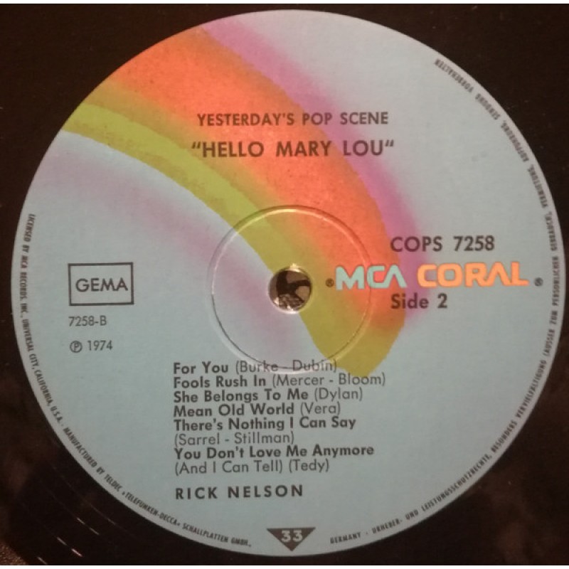 A 'Teenage Idol' of the late 1950s and early 1960s, [b]Nelson[/b] gained 9 gold records by the age of 21 in 1961. His single, [b]'Travelin' Man'[/b], was a huge #1 hit that year, selling over 2 million copies. The flip-side [b]'Hello, Mary Lou'[/b] went on to be his biggest hit ever, reaching #1 in 32 countries.