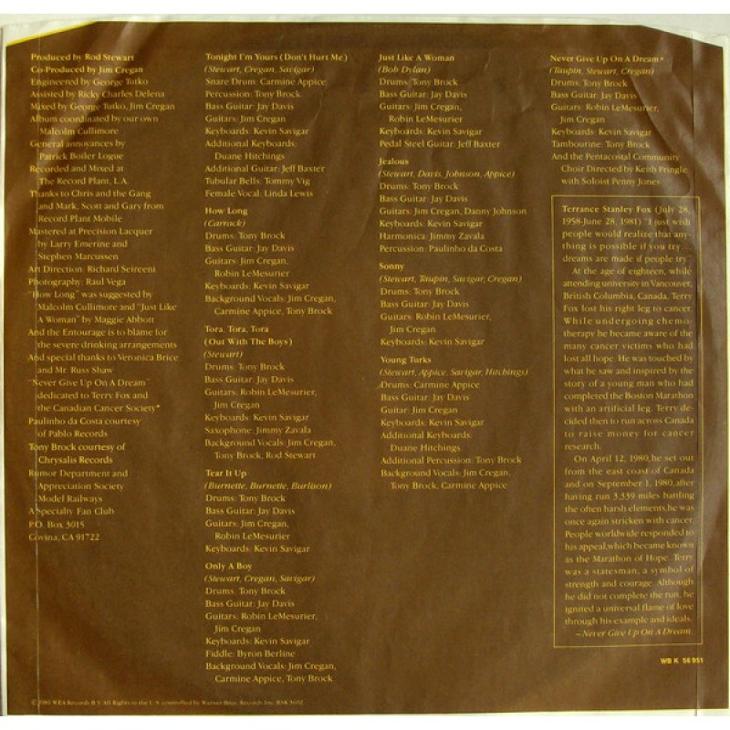Notes: Printed inner sleeve lined with plastic bag. Sleeve Notes: Album co-ordinated by our own Malcolm Cullimore, General Annoyances by Patrick Boiler Logue. Recorded and mixed at "The Record Plant, L.A.". Thanks to Chris and the gang and Mark, Scott, and Gary from Record Plant mobile. Mastered at Precision Lacquer. "How Long" was suggested by Malcolm Cullimore and "Just Like A Woman" by Maggie Abbott, And the entourage is to blame for the severe drinking arrangements. Special thanks to Veronica Brice and Mr Russ Shaw."Never Give Up On A Dream" is dedicated to Terry Fox and the Canadian Cancer Society. Paulinho De Costa courtesy of Pablo Records. Tony Brock courtesy of Chrysalis Records. ℗&© 1981 WEA Records B.V. Manufactured in Germany. Runouts are stamped except the etched "XX".